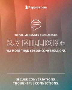 In 2025, our community sent over 2.7 million safe and secure messages, sparking more than 670,000 conversations between breeders and puppy seekers. Puppies.com continues to make connecting easier and safer for everyone, ensuring a smooth journey toward finding the perfect puppy match.