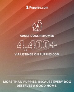 Puppies.com also helps match adult dogs with loving homes, because every dog deserves a second chance.