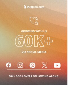 More than 60,000 dog lovers are part of our growing Puppies.com community. Thank you for sharing the journey, the joy, and the puppy love with us through our social channels and more. We’re better and stronger together.